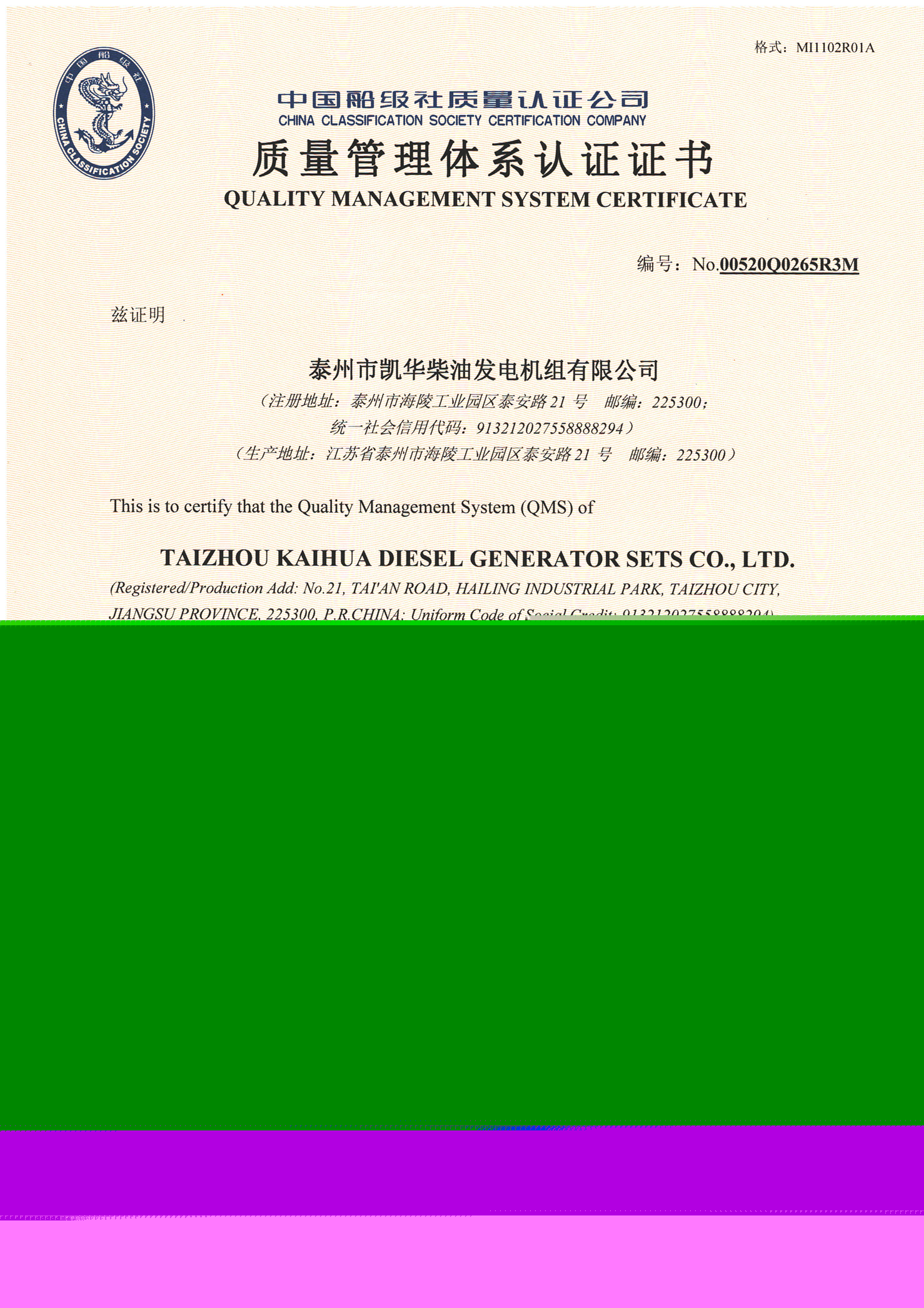玉柴OEM證書